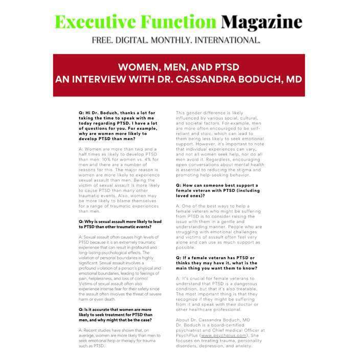 • Women, Men, and PTSD an Interview with Dr. Cassandra Boduch, MD